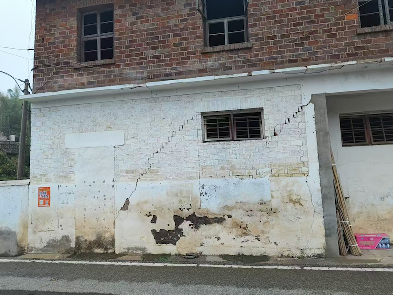 天基觀測結果與實勘完全對應,錳礦開采區域所處房屋發生大面積開裂,當地村民反映:房屋的裂縫開展時間主要發生在十多年前,近幾年裂縫已幾乎不再發展